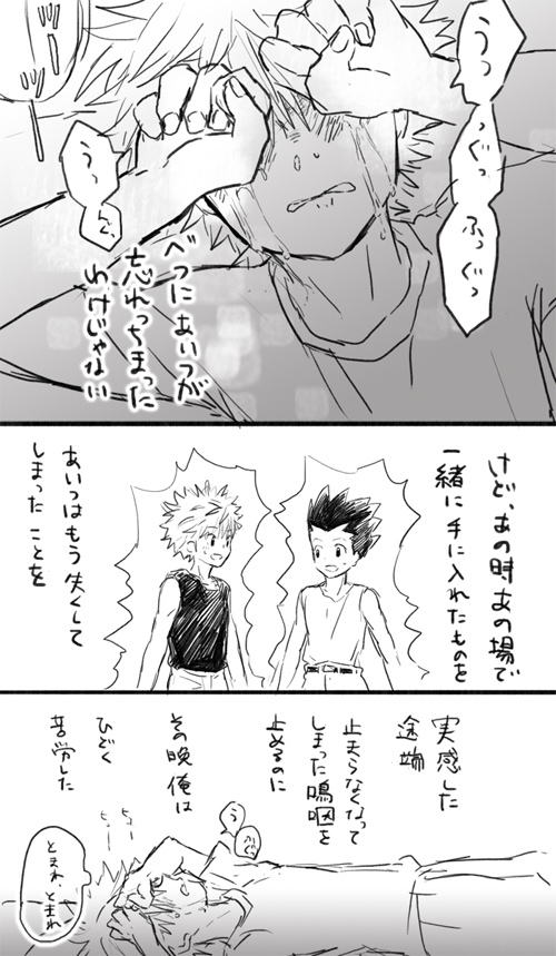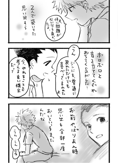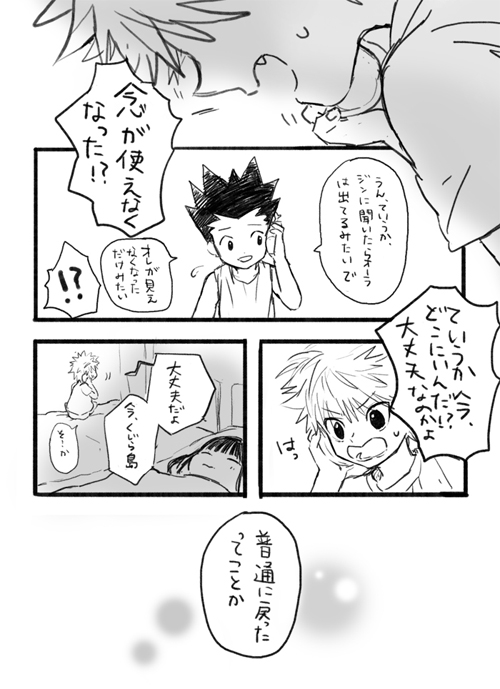 そっかキルアといたころは目的のために強くならなきゃっていう状況が多かったのと、キルアと競ったりとかそういうこともあったから日常的に念を使って訓練することが多かっただけか(………)